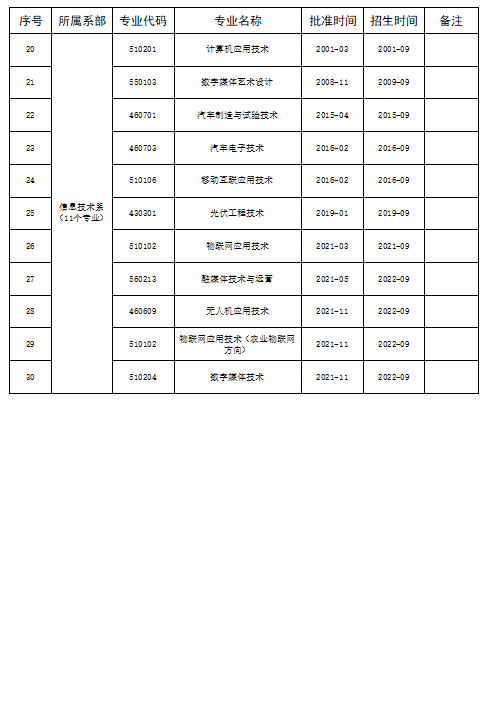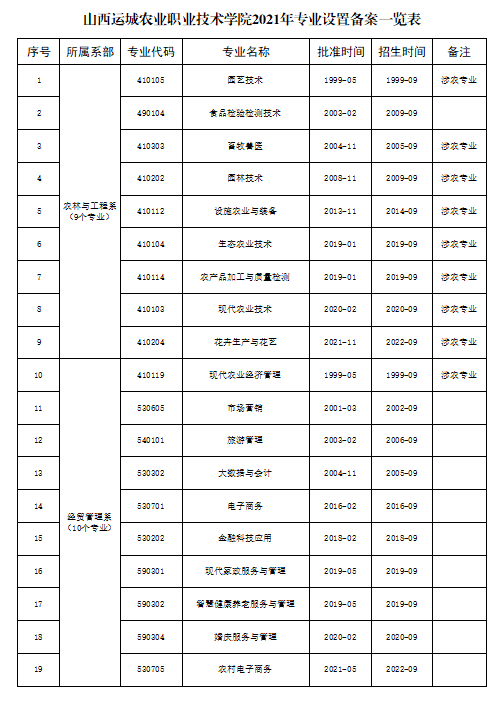 山西运城农业职业技术学院2021年专业设置备案一览表