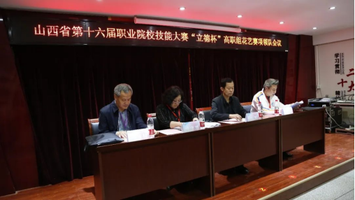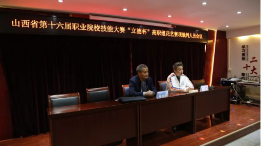 赛前,领队、裁判等队伍召开会议,共同商议。旨在对本次参赛工作进行再安排、再部署、再要求,进一步明确工作任务,靠实工作职责,确保立德杯”高职组花艺赛项顺利召开。
