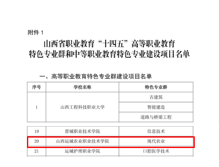 在山西省职业教育“十四五”高等职业教育特色专业群建设项目中,学院“现代农业”专业群成功入选,彰显了学院在农业类专业建设中的深厚积淀与鲜明优势。作为学院的核心专业集群,“现代农业”专业群紧密对接山西农业产业转型升级和乡村振兴战略需求,整合优质教学资源,深化产教融合、校企合作,构建了涵盖种植、养殖、农产品加工、乡村旅游等多领域的特色专业体系。依托该专业群建设,学院将进一步强化行业产教融合共同体、市域产教联合体建设,推进“岗课赛证”综合育人,打造高水平实训基地,为现代农业发展培养更多高素质技术技能人才。
