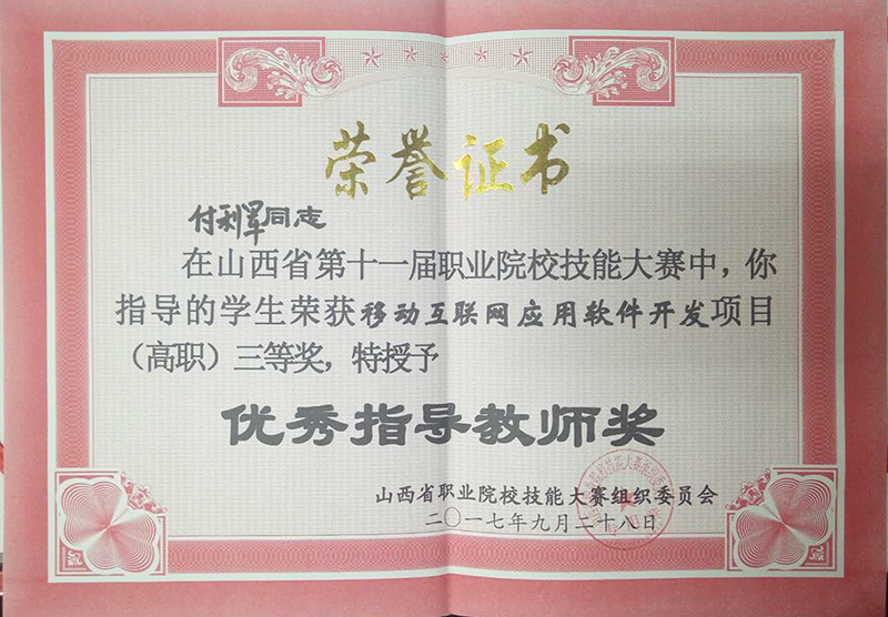 我院派出一支代表队参加了此次比赛,领队王迪华,指导老师:付利军、杨金劳,参赛学生:郝文源、李若扬、李腾。最终我校在此次技能大赛中获得三等奖。