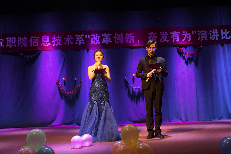 在全院上下深入开展“改革创新奋发有为”大讨论的背景下,由我系组织的主题演讲比赛于2019年3月14日晚七点半于综合三楼举行。比赛现场首先是集体起立高唱国歌,然后是院团委孔梅岩副书记致辞,对此次大讨论的目的、意义和学院部署做了说明,并寄语广大学生,锻炼技能,奋发有为,为学院发展和个人成才而努力。随后参赛的选手依次登场,围绕着改革、创新、奋进、青年、爱国等主题为全系师生呈现了一场精彩的演讲比赛。