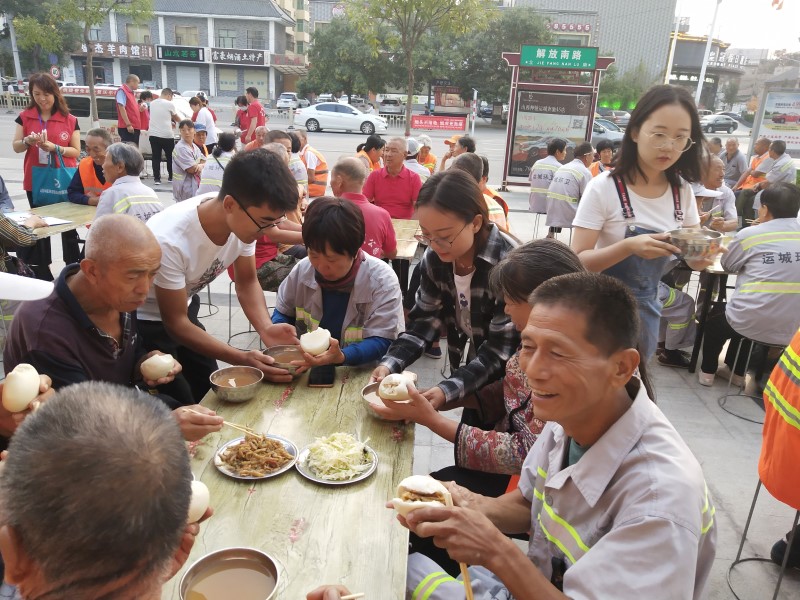 美好的一天从志愿者开始,在这美好的一天老师带领我们一行人前往了清洁工休息地,在前期的准备工作中我们遇到了志愿者团队的其他优秀者并与他们一起展开了今天的志愿服务~为辛勤的清洁工送上一份热腾腾的饭菜,服务有条不紊的进行着,践行服务的同时,我们深深感受到了人性的真善美。