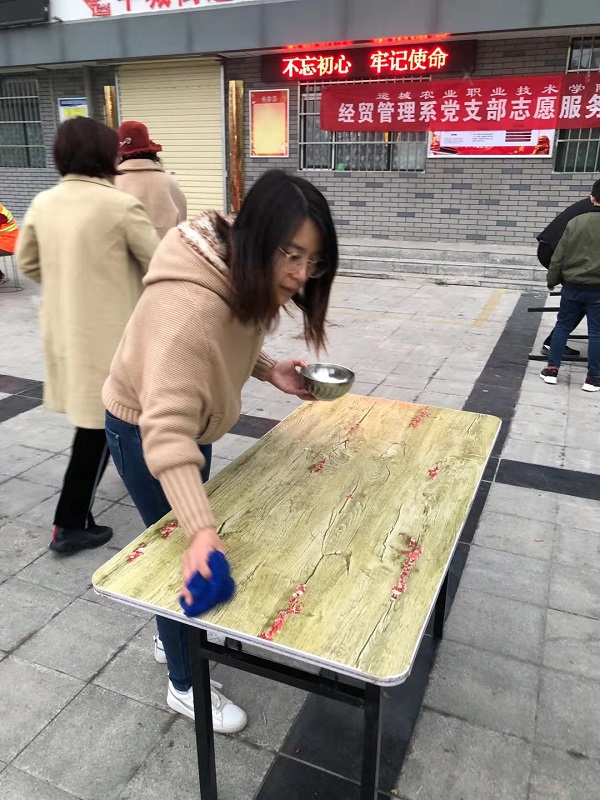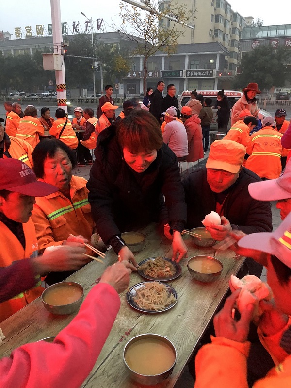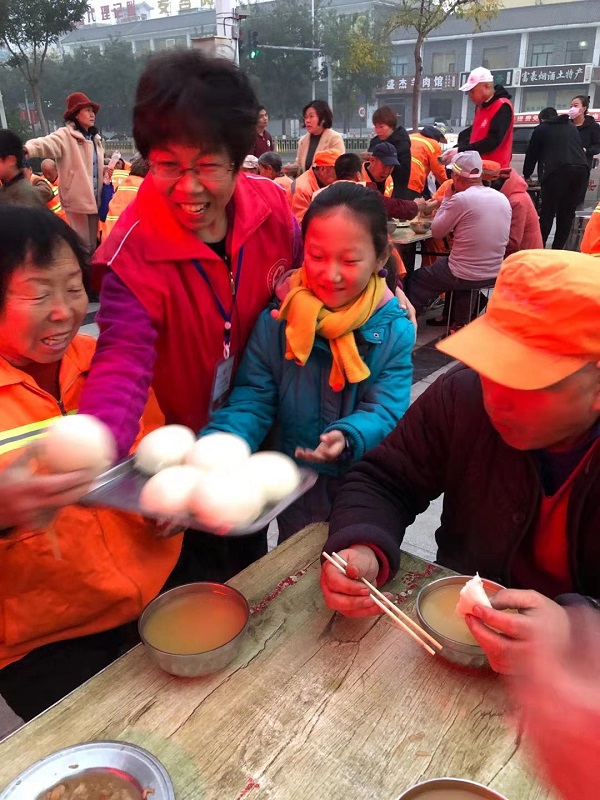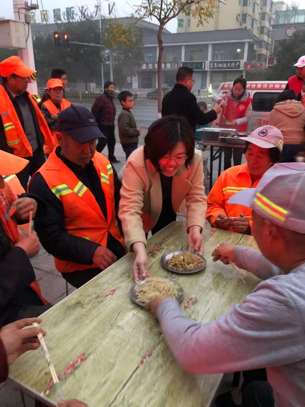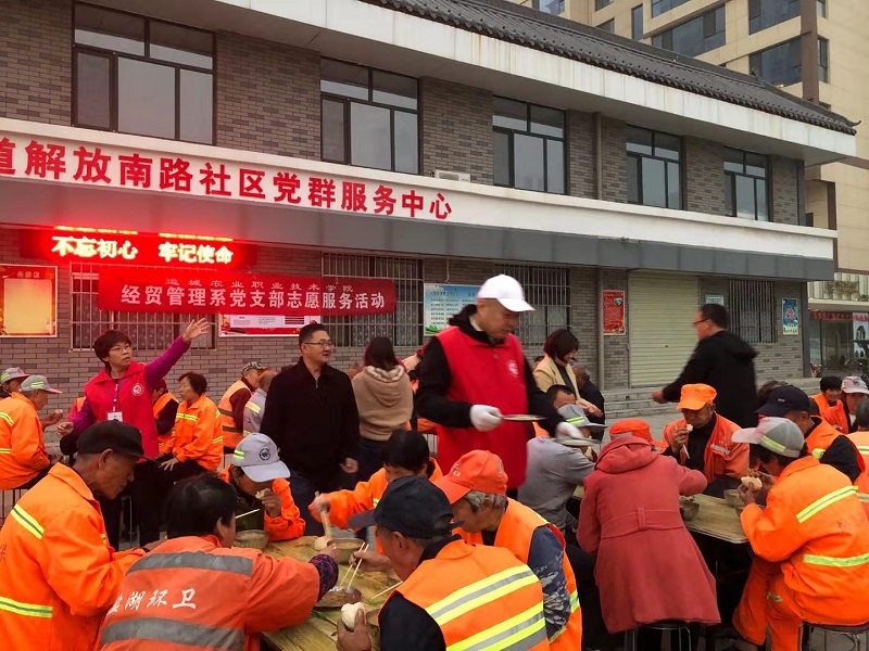 11月7日早6时许,运城农业职业技术学院经贸系党支部的9位党员践行“不忘初心 牢记使命”精神,参与爱心早餐的发放活动。同志们热情高涨,早早就赶到现场,与环卫工人沟通交流;环卫工人们都能有序停放车辆,并排好队伍,没有插队现象。发放早餐过程井然有序,老师们都感觉这种活动非常有意义,都够净化心灵,提升境界,都愿意再次参加。其中有两名小学生也在妈妈的带领下参与其中,提早感受帮助他人的快乐。